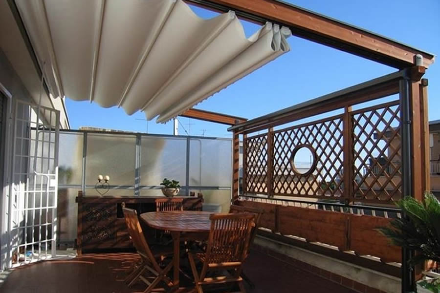 Sono strutture di nuova generazione dal design elegante e raffinato adattabili al clima da utilizzare sia in estate che in inverno. Le lamelle sono progettate con un sistema di ripiegatura totalmente automatica, creando un ambiente en plen air vivibile tutto l’anno.